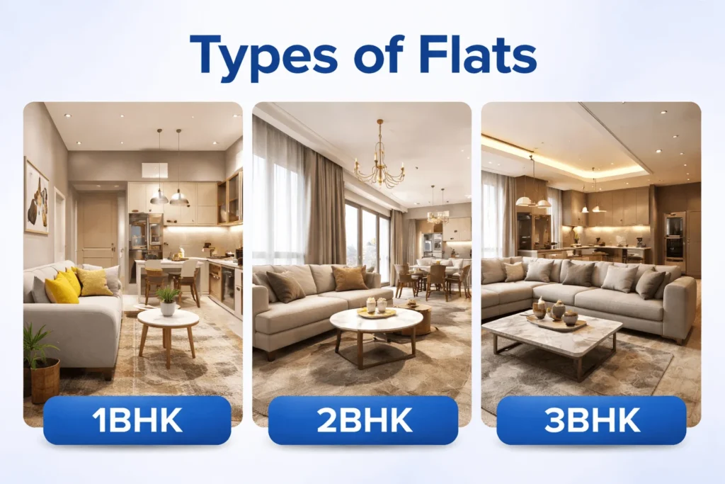 Flat Type | Ideal For | Size Range (Sq. Ft.) | Price Range (Approx) | Key Features |